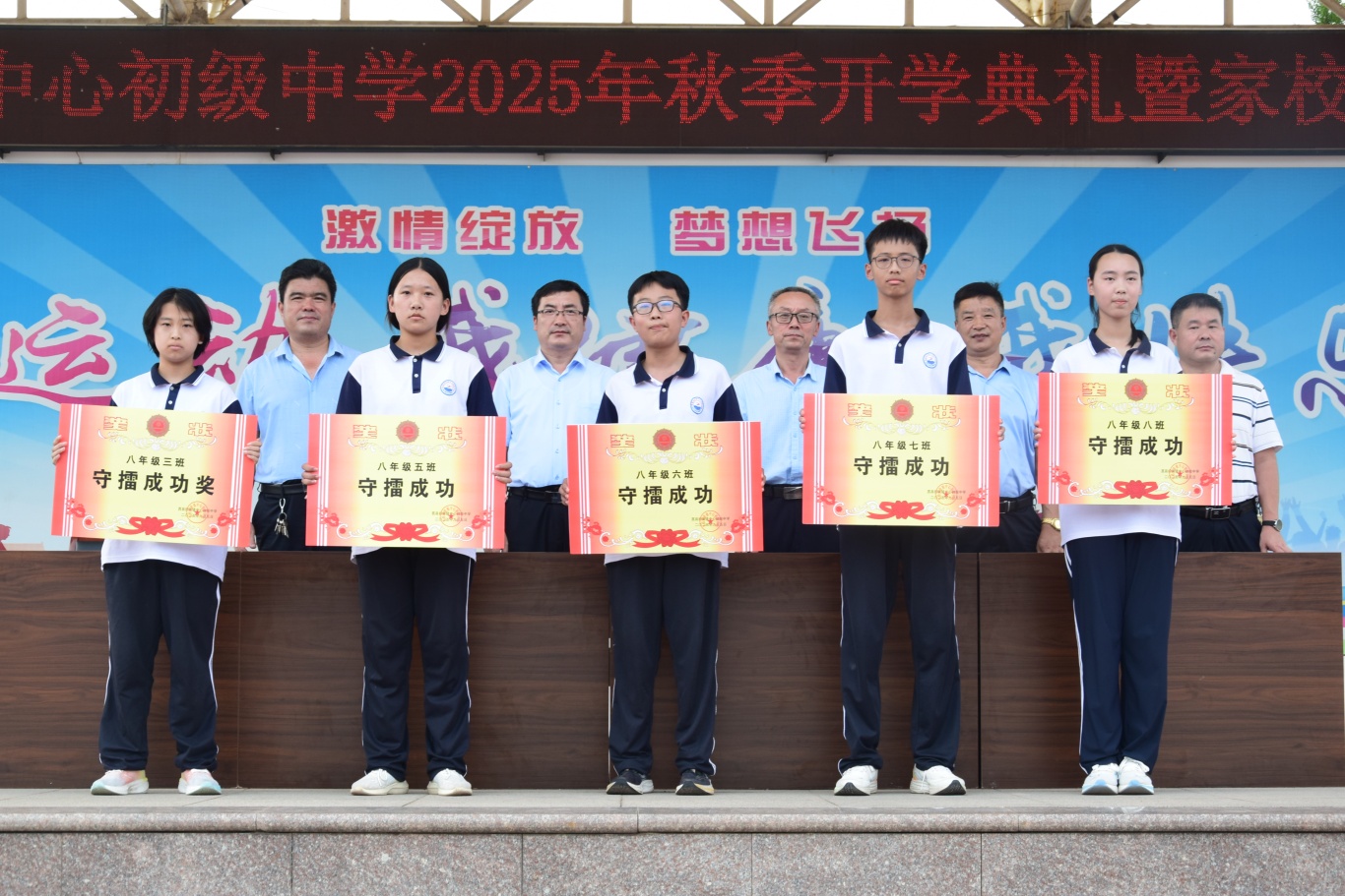 隆重颁发“班级挑战赛”中挑战成功的奋进集体与成功守擂的荣誉班级。愿这一刻的喝彩,点燃新一轮的团结与拼搏之火。