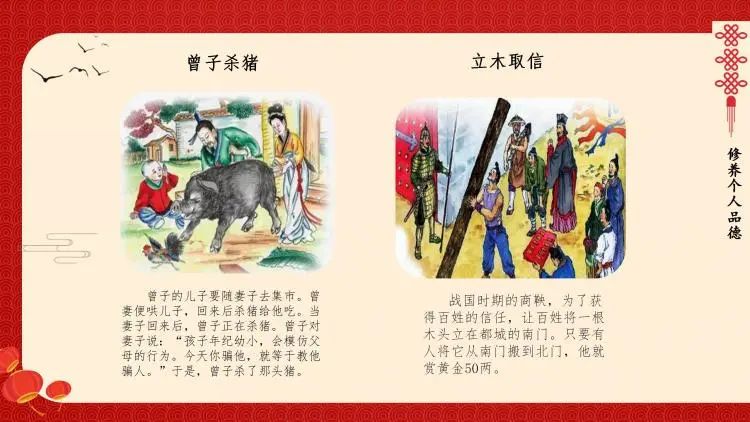 社会公德第一方面是崇德向善。崇德向善,是中华文明发展历史的光辉结晶,是中华民族的传统美德。崇德向善的品德,增进了人类与自然、国与国、人与人之间的和谐发展。一个文明社会,首先应该是一个有道德的社会。树立崇德向善的良好家风,有助于营造全社会崇德向善的浓厚氛围,以好的家风支撑起好的社会风气。家长朋友们可以给孩子讲讲下面的小故事。