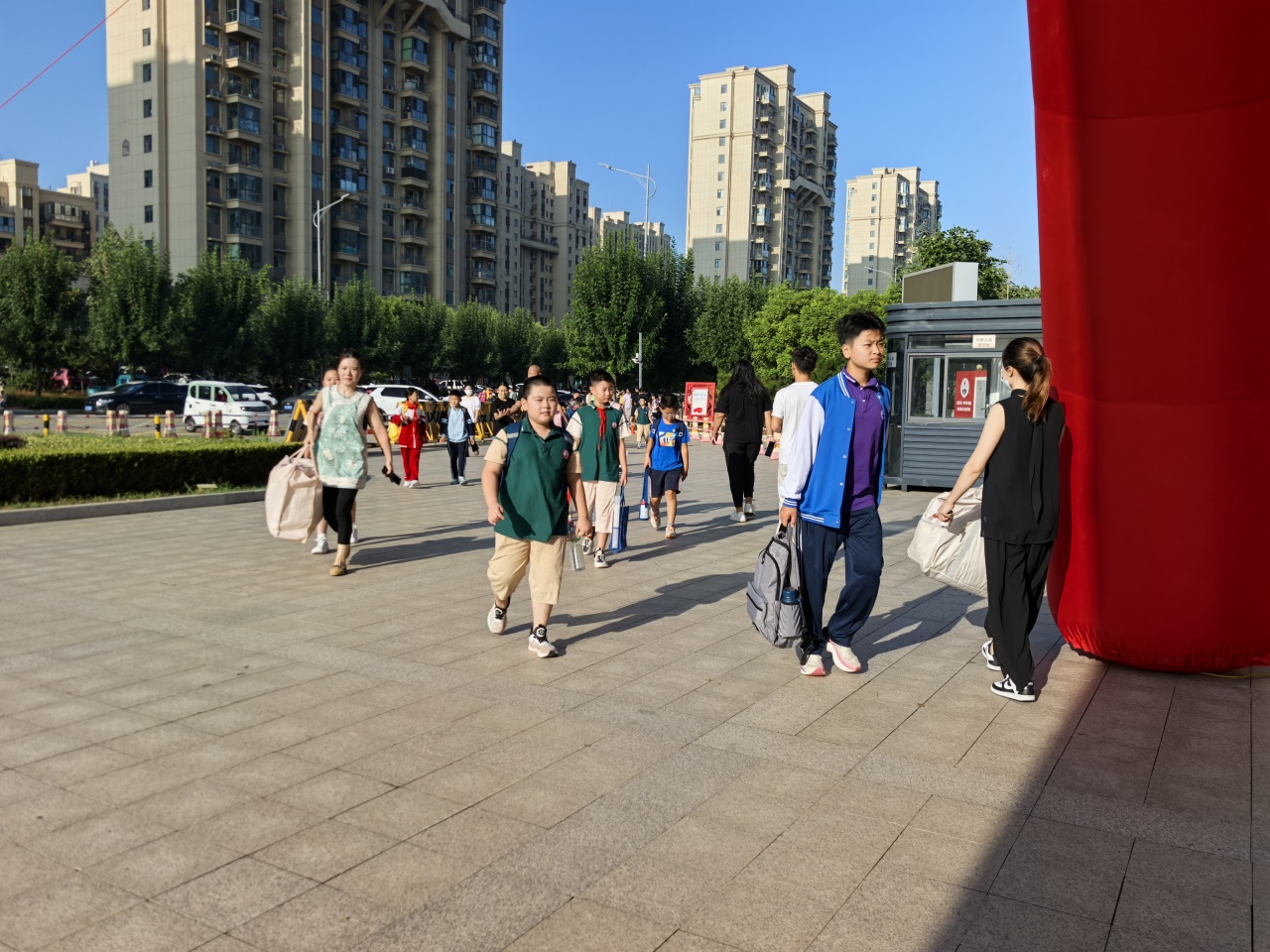 校门口,老师们早已提前到位,面带微笑指引方向、解答疑问;高年级同学主动接过学弟学妹的行李,热情分享校园小知识。从核验信息、领取资料到熟悉班级,每一个环节都井然有序,温暖的互动让初来乍到的新生快速褪去陌生感,也让家长们倍感安心。